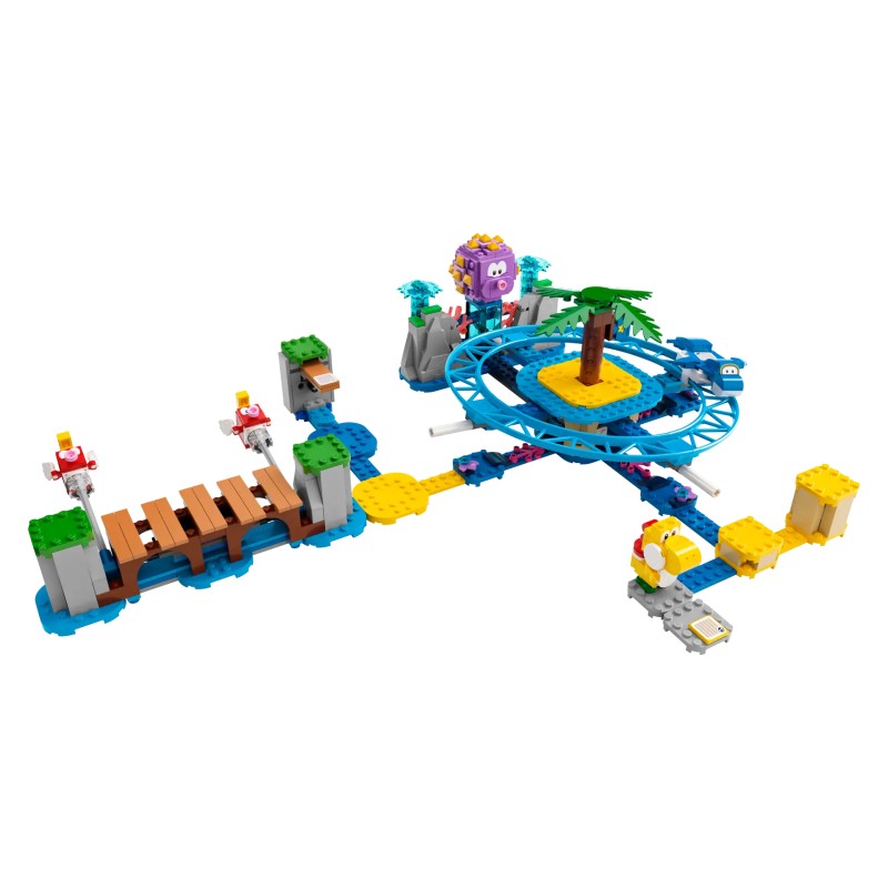 Acesta include un roller coaster cu o figurină LEGO Dolphin pentru LEGO Mario sau LEGO Luigi (figurine neincluse) pe care să se plimbe în timp ce încearcă să scuture Super Star Block din palmier și să răstoarne un Big Urchin.Fă-l pe Cheep Cheeps să "sară" sărind pe pod și colectează mai multe monede digitale pentru scufundări spectaculoase de pe trambulină și interacțiuni amuzante cu figurina de jucărie Yellow Yoshi.