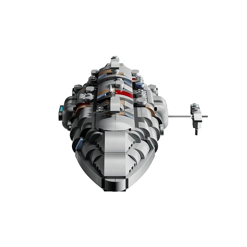 Secțiunea laterală poate fi detașată pentru a vedea detaliile interioare, iar setul include și o fregată medicală Nebulon-B mică, construită din cărămidă, care poate fi expusă „zburând” alături de Home One.