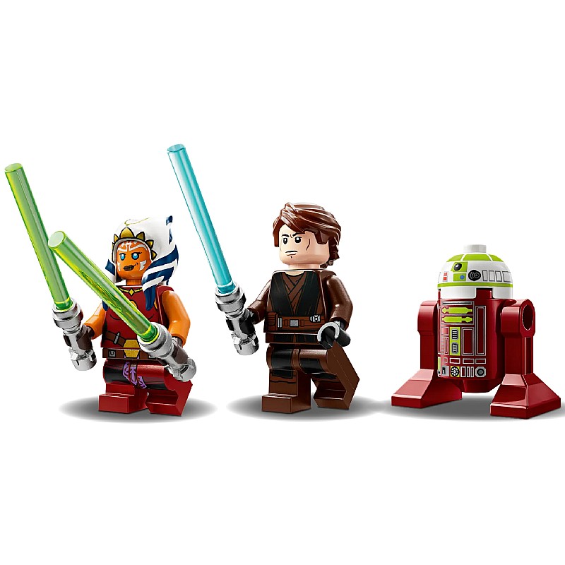 Setul de joacă construibil include 2 minifigurine LEGO Star Wars - Ahsoka Tano și Anakin Skywalker cu săbii laser - plus o figurină droid LEGO R7-A7 pentru jocul fantastic.