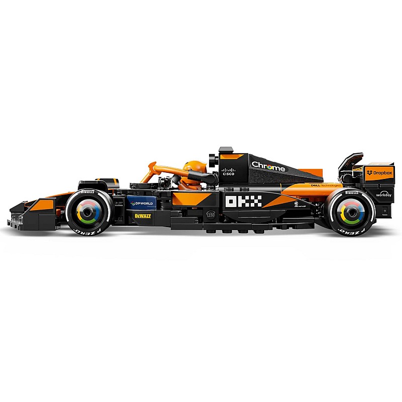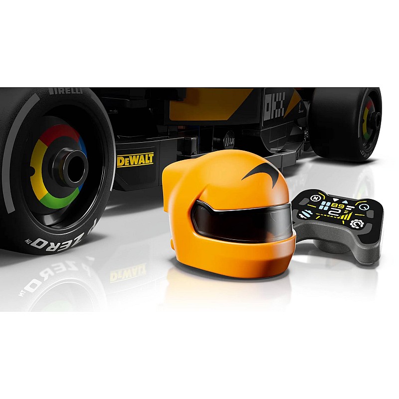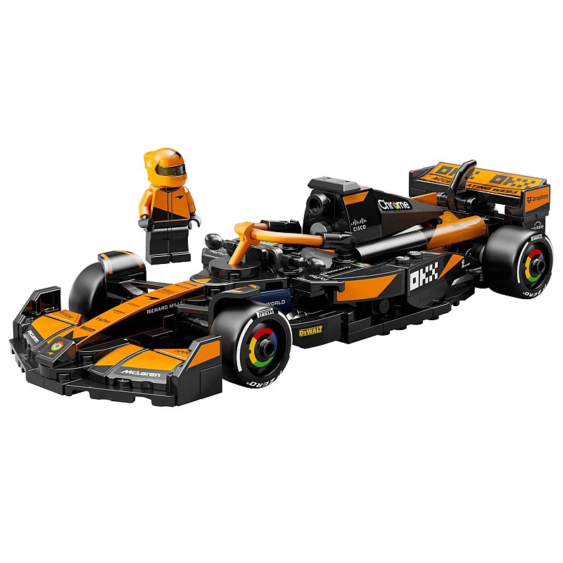 Vehiculul de jucărie vine, de asemenea, cu o minifigurină de pilot care poartă un costum McLaren și o cască cu aripi pentru a fi plasată în interiorul cockpitului pentru acțiunea de curse.