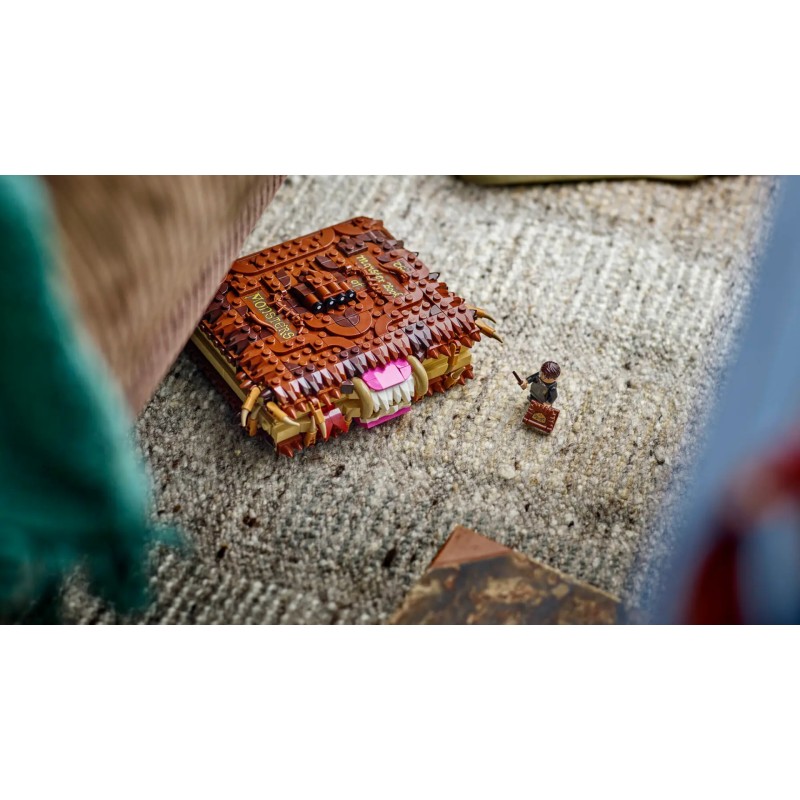 Setul distractiv de fantezie prezintă o recreare detaliată, construită din cărămidă, a Cărții Monștrilor, manualul simțitor folosit în îngrijirea creaturilor magice.