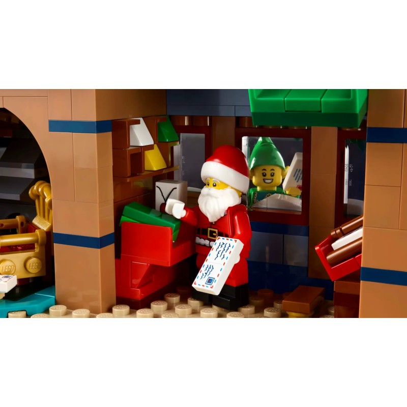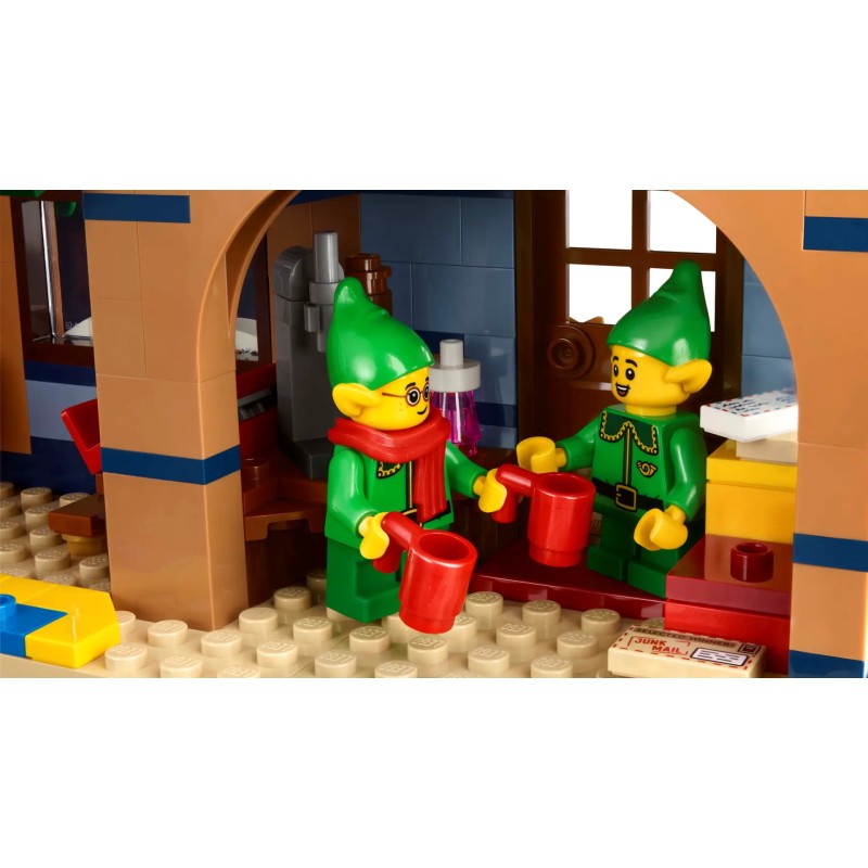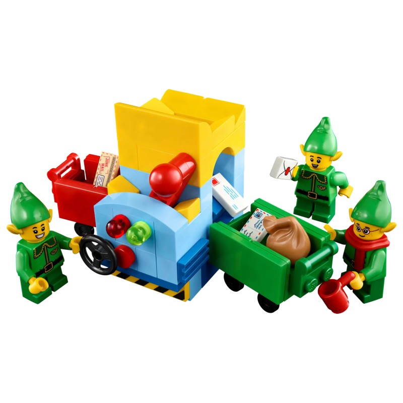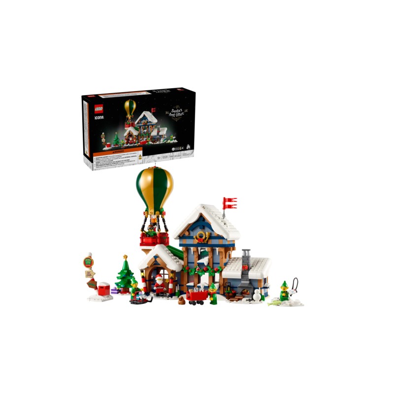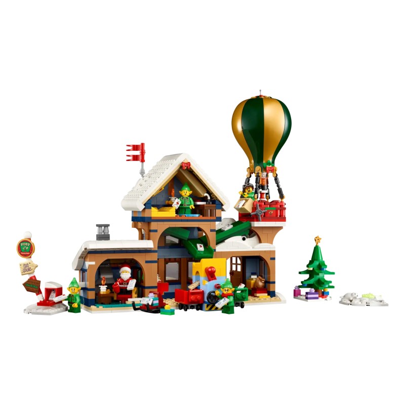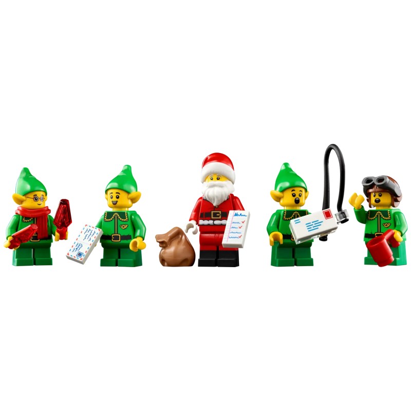 Alte construcții includ un balon cu aer cald cu un arzător iluminat, un sortator de scrisori cu 2 căi, o scenă de pescuit la copcă, un brad de Crăciun, un indicator, o cutie poștală și o sanie, plus o minifigurină Moș Crăciun și 4 figurine elf.