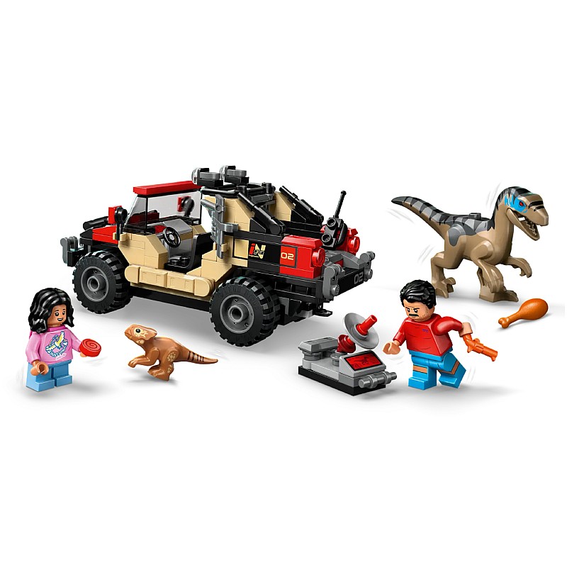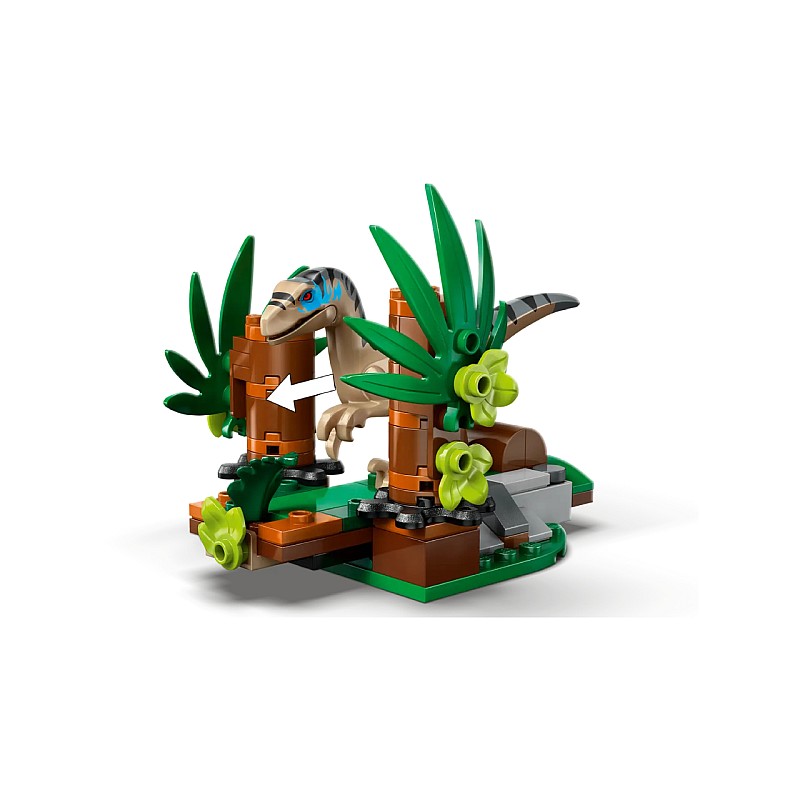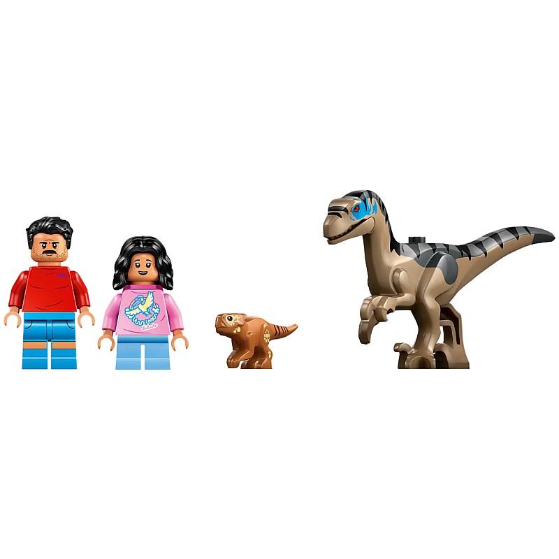 După ce construiesc setul de dinozauri, copiii pot reda scenele preferate din film sau povești noi cu minifigurinele Reuben și Isabella Delgado, figurina dinozaur animal de companie Baby Dolores și o figurină Velociraptor cu maxilar mobil.