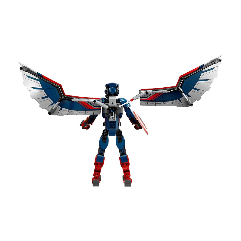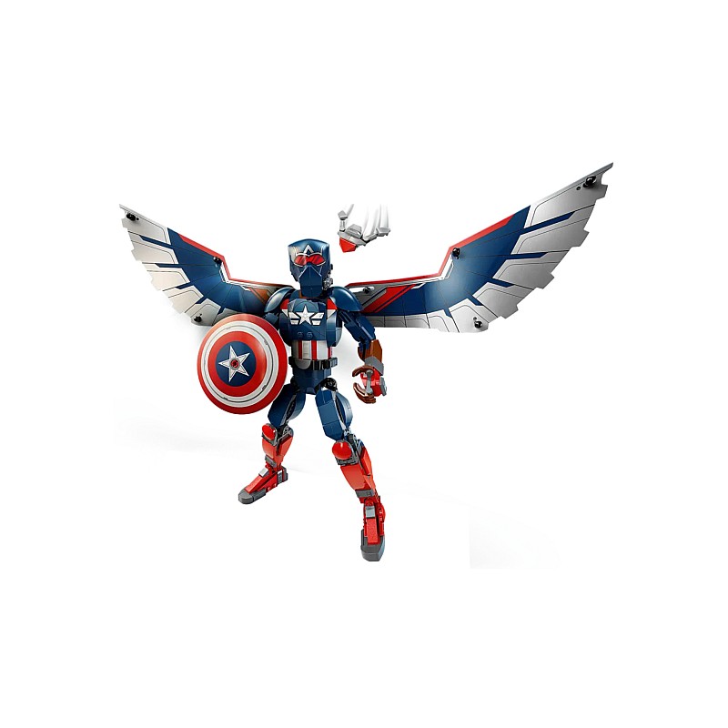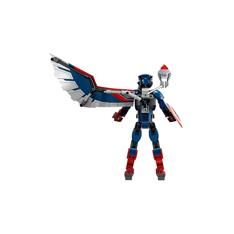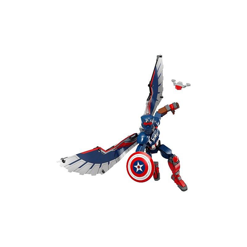 Figurina Căpitanului America poartă scutul său iconic și are o dronă Redwing construibilă fixată pe spate, pe care copiii o pot detașa cu ușurință pentru un joc independent.