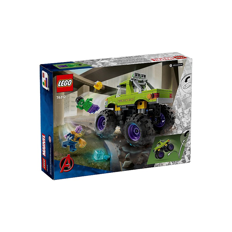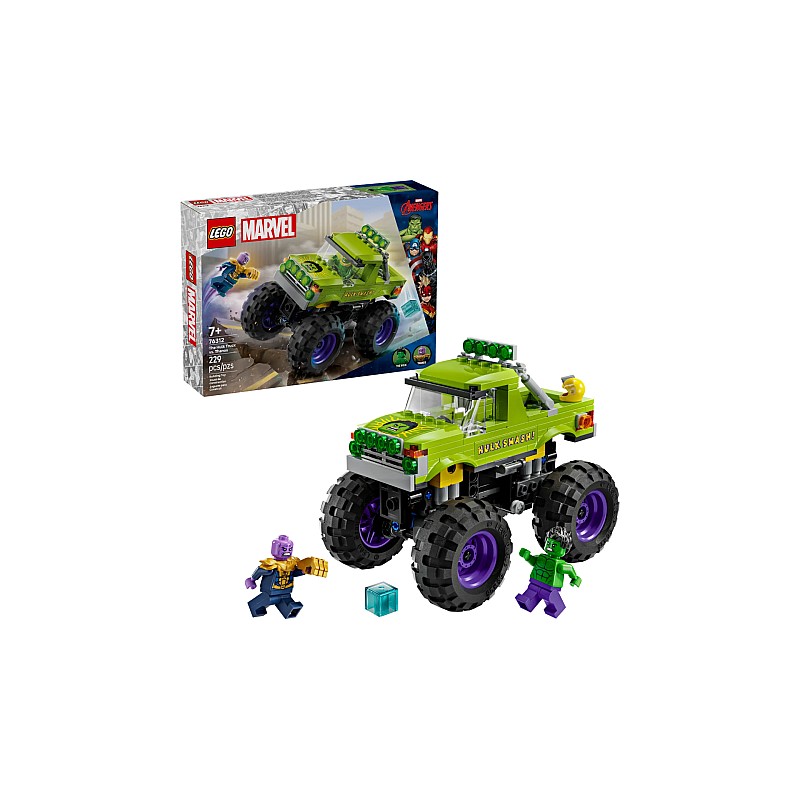Camionul Hulk VS Thanos este un set de joacă LEGO Marvel construibil, cu camionul greu al lui Hulk și 2 minifigurine Super Eroi.
