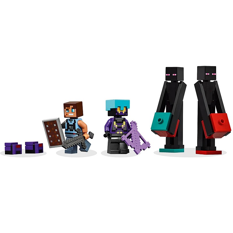Armele includ o arbaletă Minecraft și o sabie și un scut netherite. Modelul turnului Enderman poate fi reconstruit în 2 fortărețe cu coduri de culori, ceea ce este excelent pentru acțiunea PvP (jucător contra jucător).