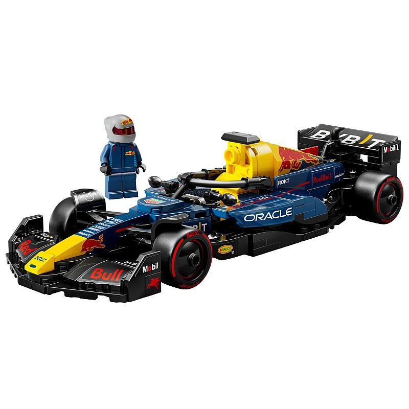 Setul auto include o minifigurină pilot F1 care poartă o ținută Red Bull și ocască și poate fi plasată în cockpitul mașinii de curse F1.