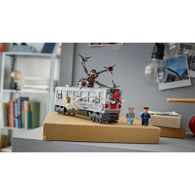 Spider-Man vs. Doc Ock Subway Train Scene este un set de construcție cu trenuri pentru copiii care iubesc aventurile pline de acțiune și jucăriile LEGO Marvel pentru construirea de scene de luptă.