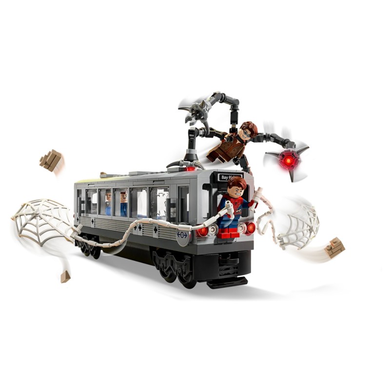 Minifigurina Doc Ock are 4 tentacule articulate, 2 cu elemente „rază laser” și 2 cu cleme care se atașează de tren. Acoperișul detașabil oferă acces la interiorul trenului, care are spațiu pentru ca pasagerii minifigurine să stea jos.