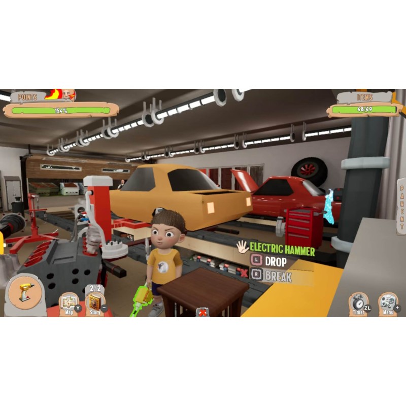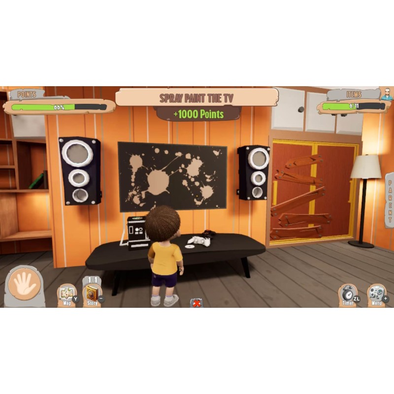 Folosește o varietate de obiecte de zi cu zi pentru a distrage atenția, a dezarma și a întârzia până când reușești să distrugi întreaga casă a părinților tăi adoptivi.