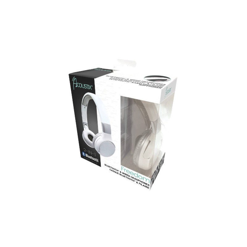 Căști audio 2 în 1 pentru a asculta muzică fără fir prin Bluetooth 5.0 (cu o rază de acțiune de până la 10 m) sau conectate la priză cu ajutorul cablului jack detașabil.