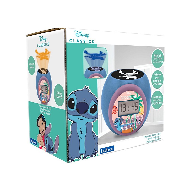 Acesta nu doar că servește drept ceas deșteptător, dar are și un proiector care permite afișarea unor imagini cu Stitch pe perete sau tavan.
