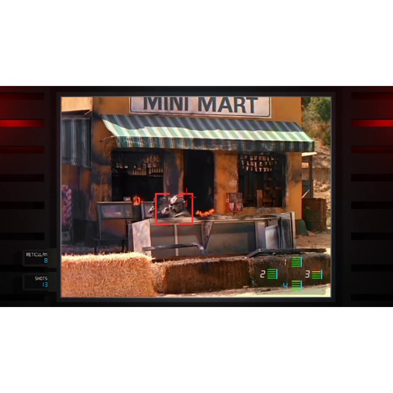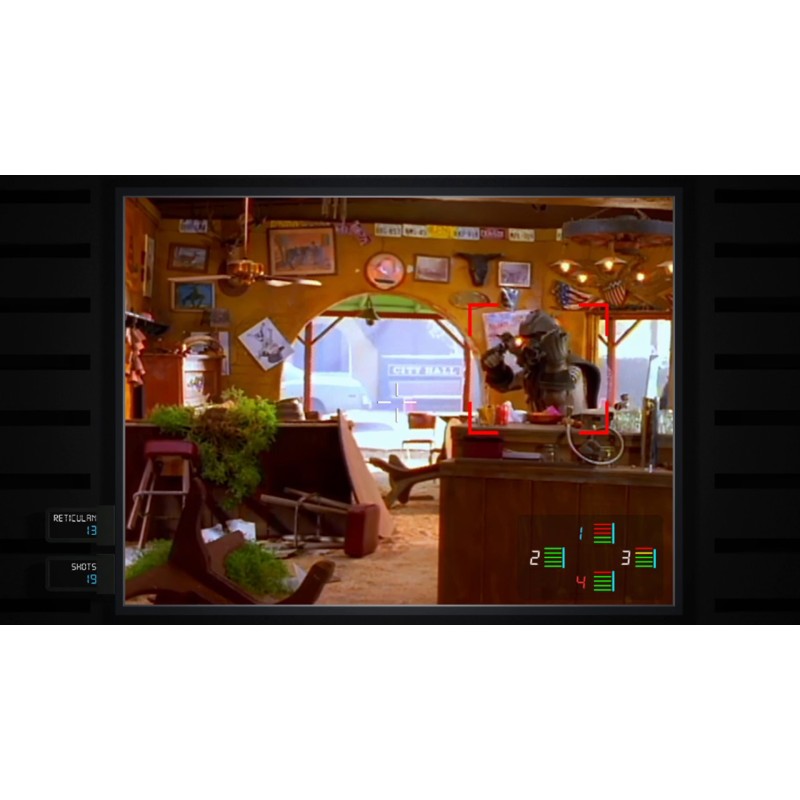 Înarmat cu patru camere de luptă dotate cu un fascicul de particule care amețește extratereștrii și cu o cameră RoverCam folosită pentru a căuta ascunzătoarea de arme Reticulan, te afli într-un festival de arme SF, din vestul sălbatic.