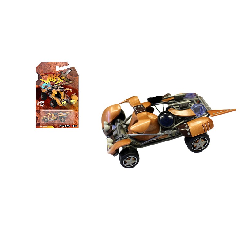 O replică de colecție turnată sub presiune a Daxtermobile, o mașină de curse de luptă prezentată în Jak X: Combat Racing numită și modelată după Daxter însuși!