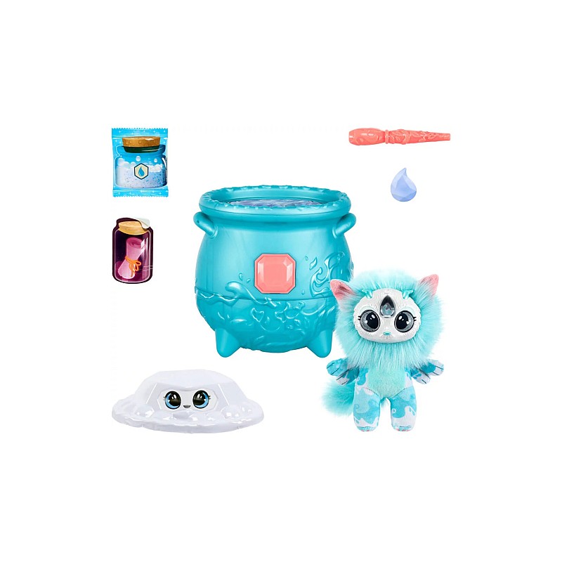 Adaugă Bubble 'N' Fizz Dust, dă-i un nume Mixie Plushie cu ajutorul pergamentului de denumire și apoi toarnă apă cu bagheta inclusă!