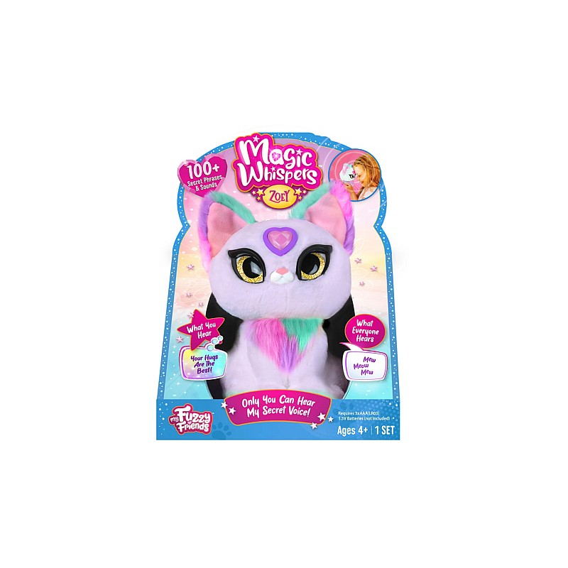 Drăguța pisicuță Magic Whispers are peste 100 de fraze și sunete secrete și poate vorbi daneză, suedeză norvegiană sau suomi.