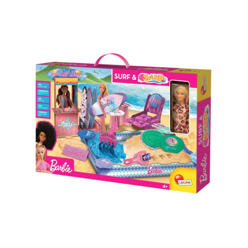 Transportă-ți păpușa Barbie pe o plajă fantastică cu păpușa Lisciani Barbie Surf & Sand With Doll.