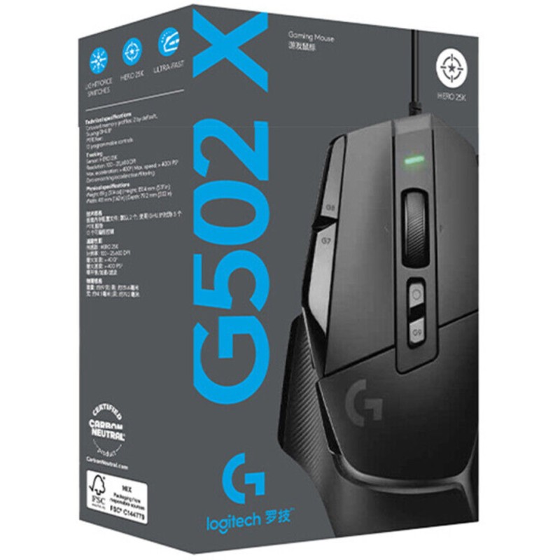 G502 X este cea mai recentă adăugire la legendara linie G502 si dispune de comutatoare optico-mecanice hibride LIGHTFORCE și de senzorul HERO 25K sub-micron. Acum, viteza și fiabilitatea incredibile, precum și acționarea precisă, sunt una singură.