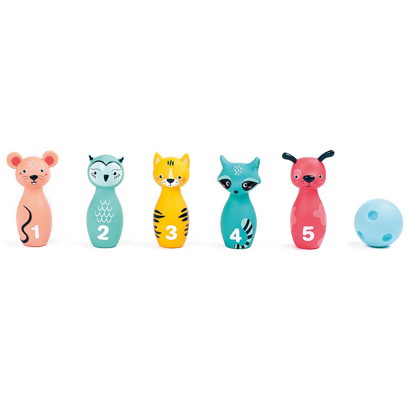 Un joc de bowling uimitor, cu 5 popice cu animale foarte populare printre copii, avand o textură plăcută la atingere și sunt ușor de ținut în mână pentru cei mici.