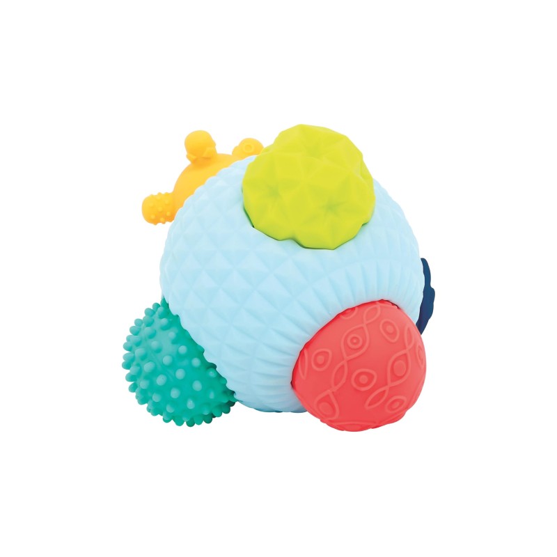 Bebelușul se distrează desprinzând bilele din structura mare, apoi găsind locurile potrivite pentru a o reconstrui. Cele 6 bile senzoriale care alcătuiesc puzzle-ul (1 mare și 5 mici) se pretează la multe jocuri.