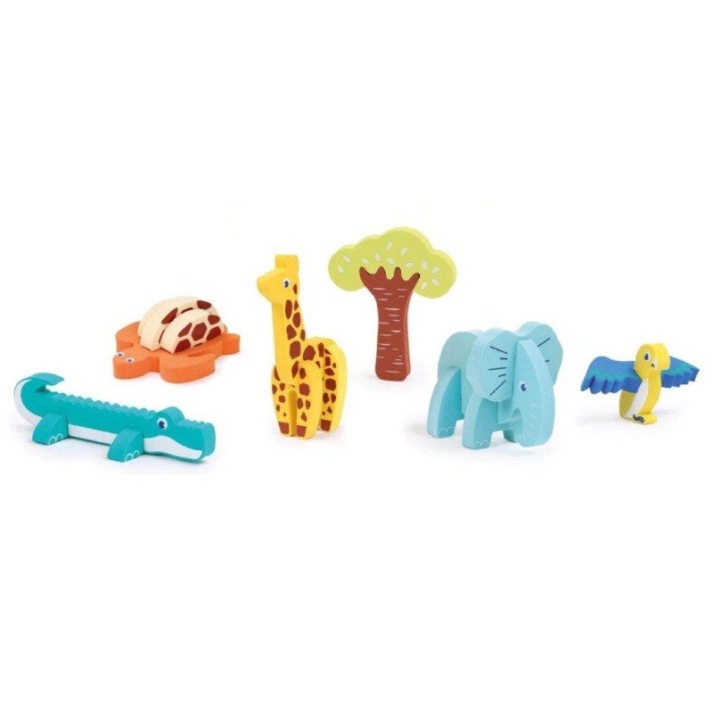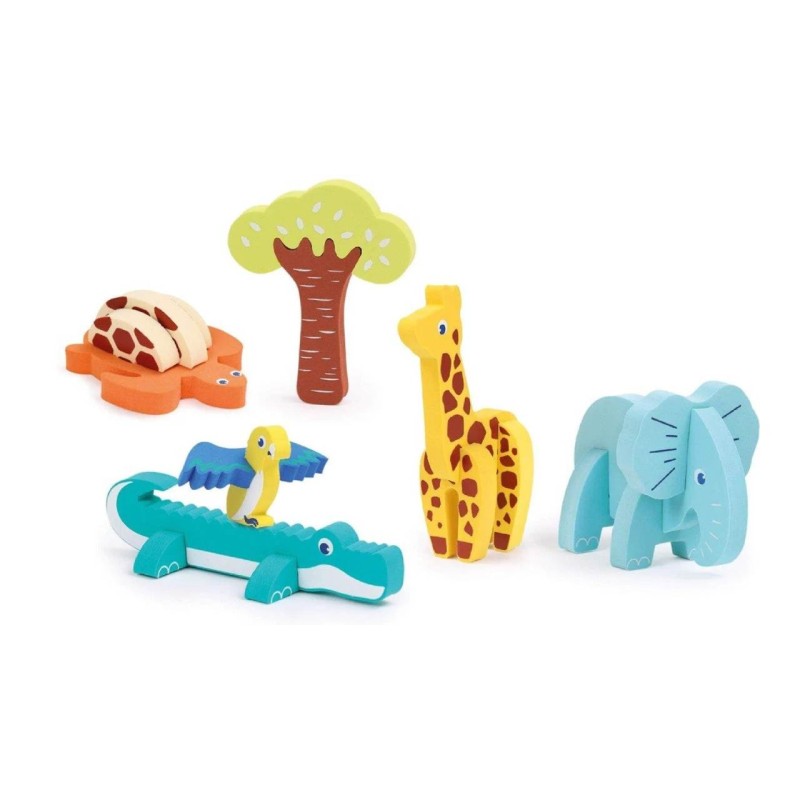 Acest joc de construcții 3D include 5 animale și 1 copac din spumă ușoară și moale pentru o joacă sigură.