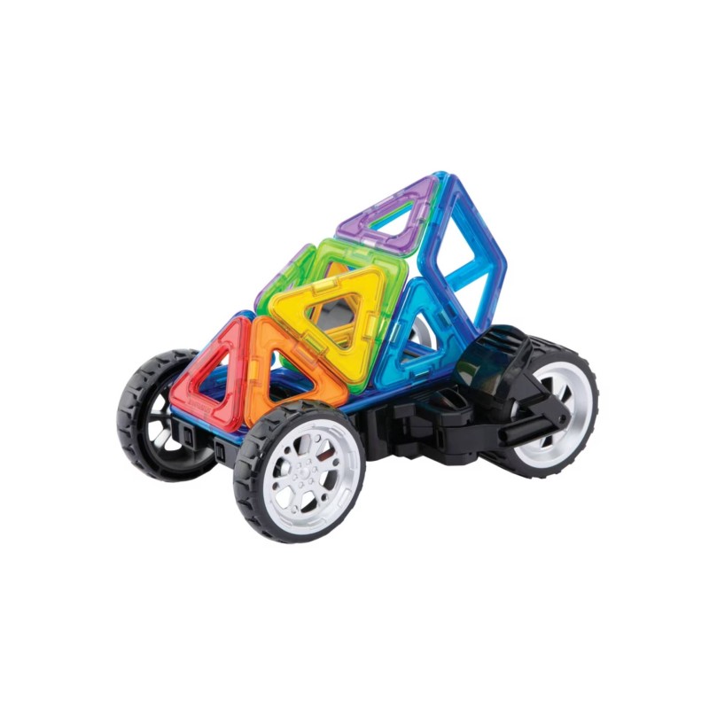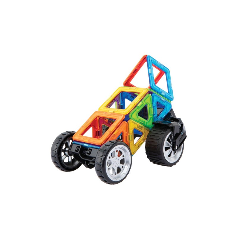 Așezați-vă Magformers pe carduri și apoi trageți-le din 2D în 3D. Creați cu 8 triunghiuri, 6 pătrate și 1 dreptunghi. Adaugă 2 roți și privește-ți creațiile cum se întrec. 4 fișe de joc incluse.