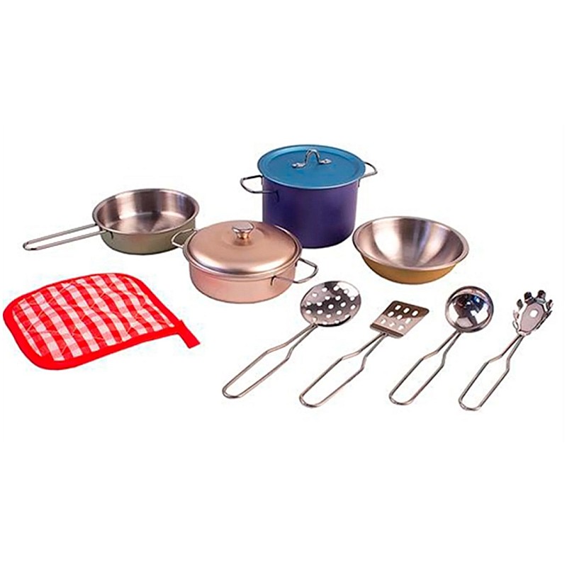 Compus din 11 piese care arată ca niște mici replici ale ustensilelor de bucătărie ale mamei și tatei.