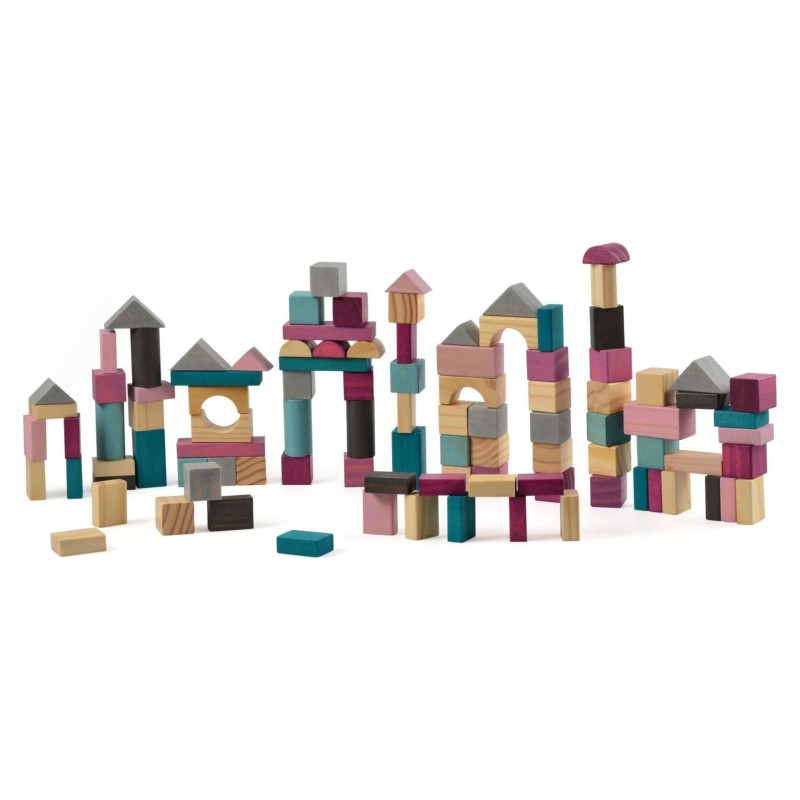 Cu un total de 100 de blocuri în culori reci, livrate într-o cutie practică cu forme distincte, aceste blocuri de lemn oferă posibilități nelimitate de construcție și joacă.