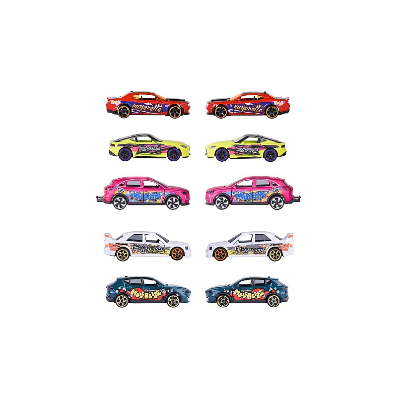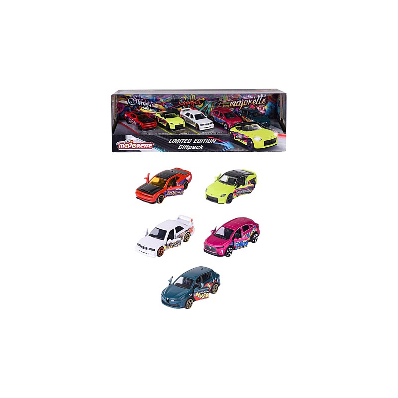 Acest set de mașini Majorette include 5 modele clasice licențiate cu un design graffiti unic, culori strălucitoare și etichete cool.