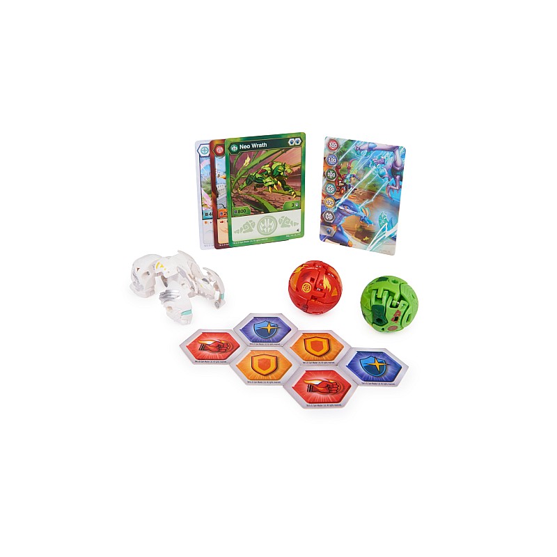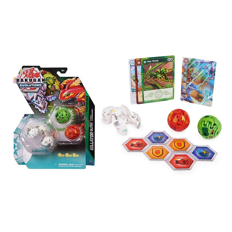 Include: un Ultra Bakugan, 2 Bakugan, 6 BakuCore, 3 cărți de caractere, o carte de poartă, o foaie de colecție, o foaie de reguli de luptă Bakugan Toy Battling.