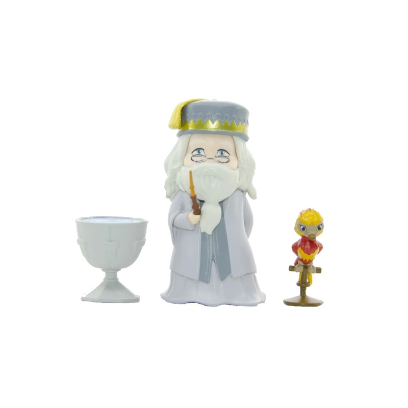 Un sortiment de zece figurine de colecție din lumea magică a lui Harry Potter, în incitante cutii orb de culoare aurie, care nu dezvăluie conținutul.