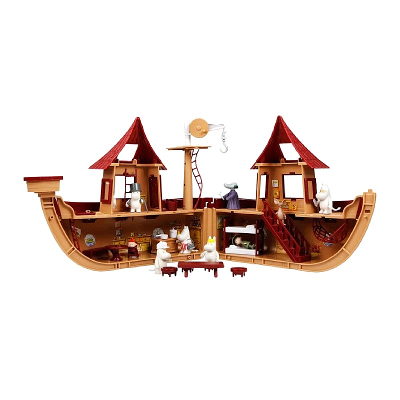 Vasul include 60 de piese, inclusiv tot mobilierul necesar în barcă și șapte figurine: Moominmama, Moominpappa, Moomintroll, Snorkmaiden, Little My și Sniff.