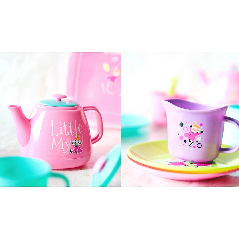 Setul este decorat cu motive de la Mumini, mai precis de la Micul Meu, și este realizat în diferite culori frumoase violet, verde, turcoaz și roz.