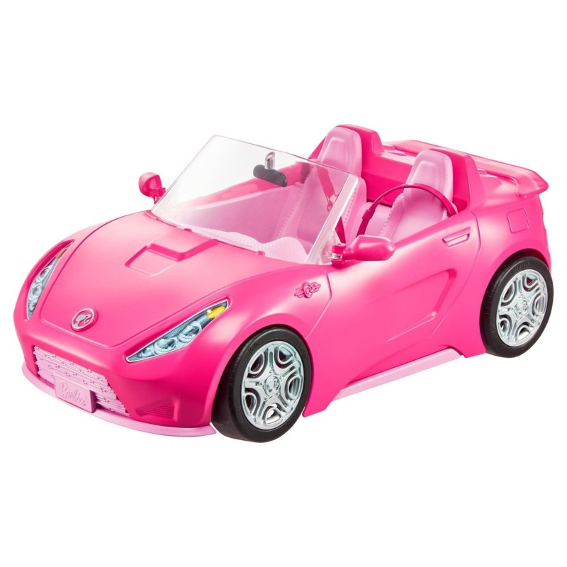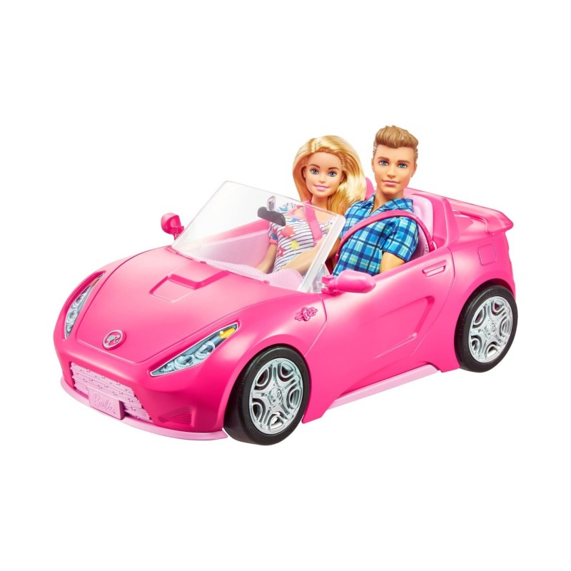 Mașina sport roz cu două locuri nu are acoperiș și are accente argintii. Păpușile nu pot sta în picioare singure. Culorile și decorul pot fi diferite de cele prezentate.