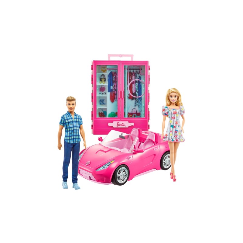 Păpușa Barbie și păpușa Ken sunt mereu în mișcare, iar cu dulapul și mașina lor decapotabilă se pot deplasa în cel mai scurt timp!