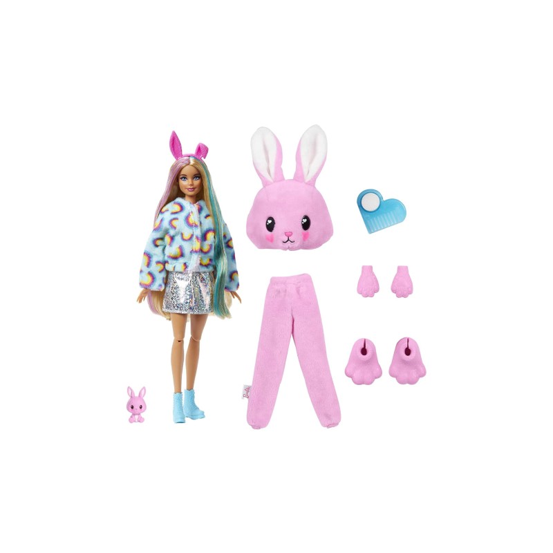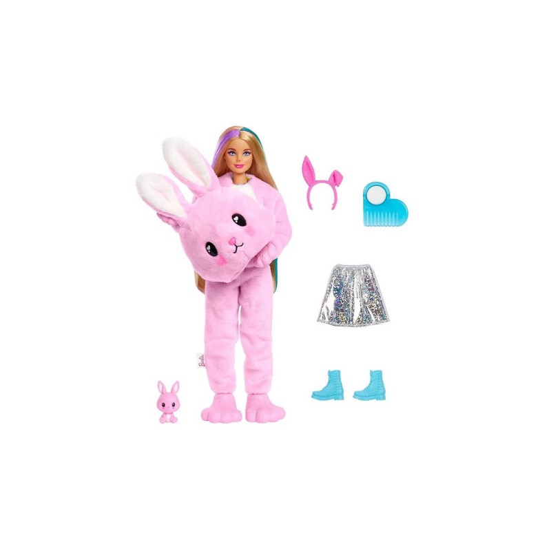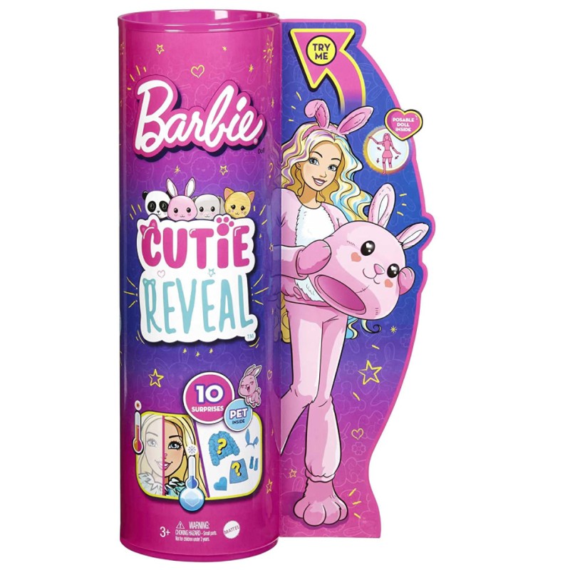 Despachetează pachetul pentru a găsi un iepuraș moale, de pluș, cu o păpușă Barbie înăuntru!