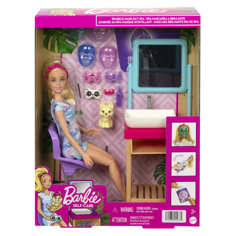 Petreceti o zi Barbie la spa cu setul de joaca Sparkle Mask Spa Day, prin care copiii pot invata ritualurile de stare de bine si relaxare!