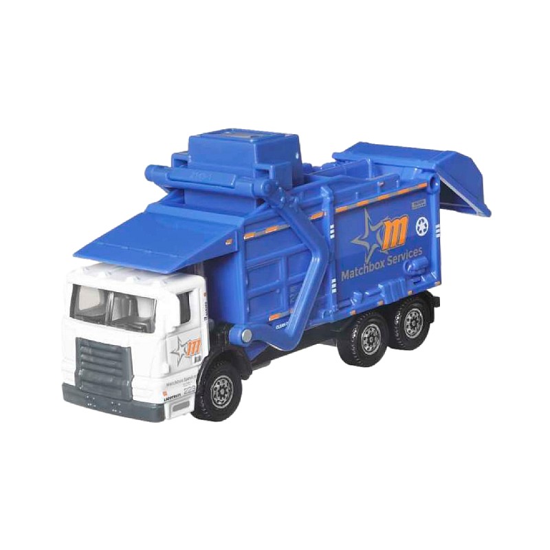 Seria Matchbox Working Rigs s-a îmbogățit cu un nou membru special, camionul de gunoi Garbage King XL albastru.