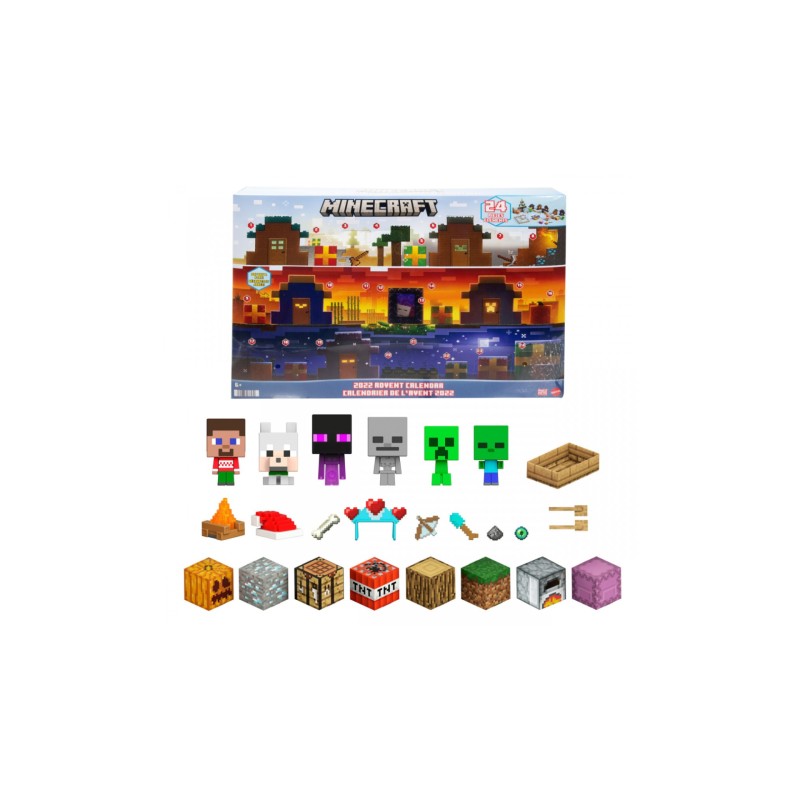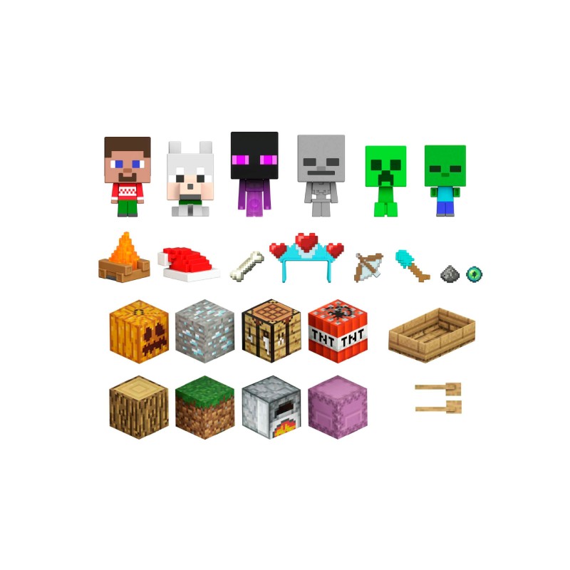 Cadourile zilnice includ figurine precum Steve, mobs și accesorii precum o pălărie de Moș Crăciun și o lopată, toate concepute cu aspectul pixelat al jocului video!