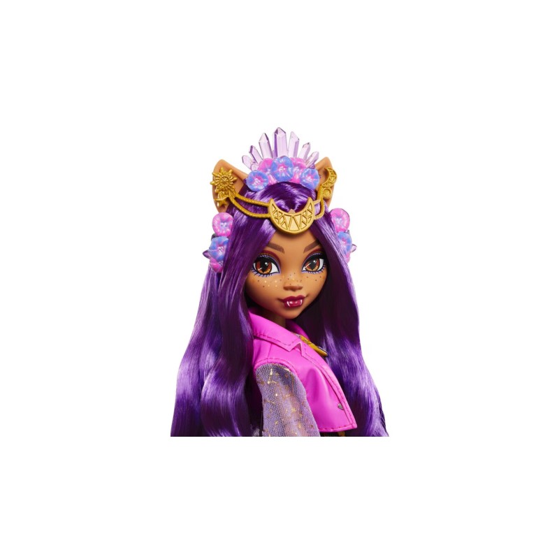 O ocazie specială necesită accesorii cu bijuterii! Fiecare păpușă Monster Fest poartă o piesă de cap uimitoare deasupra părului lor extra-lung și strălucitor.
