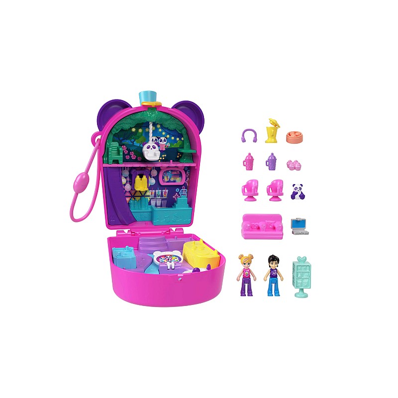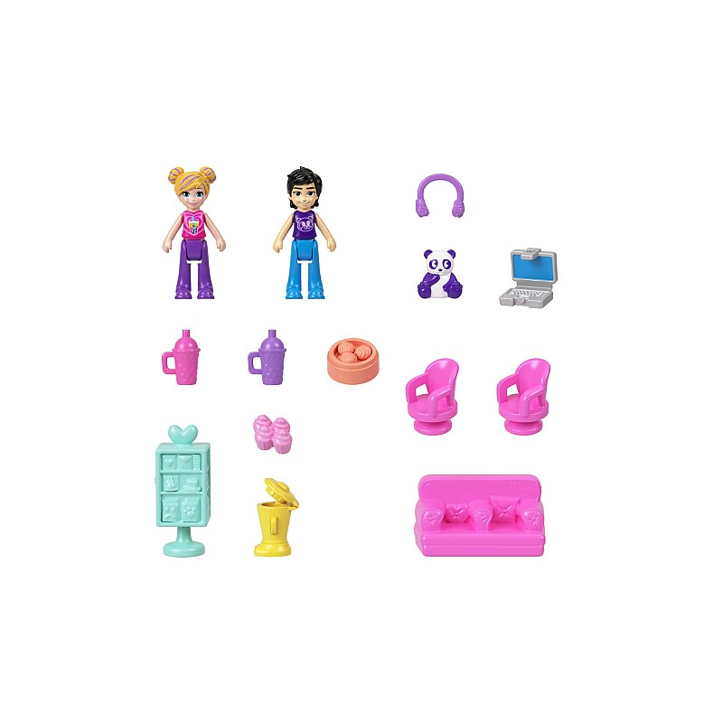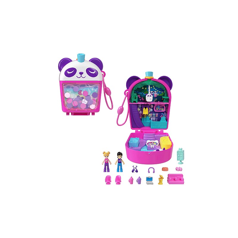 Setul vine cu o păpușă Polly Pocket exclusivă, îmbrăcată într-o ținută tematică, potrivită cu motivul panda bubble tea.