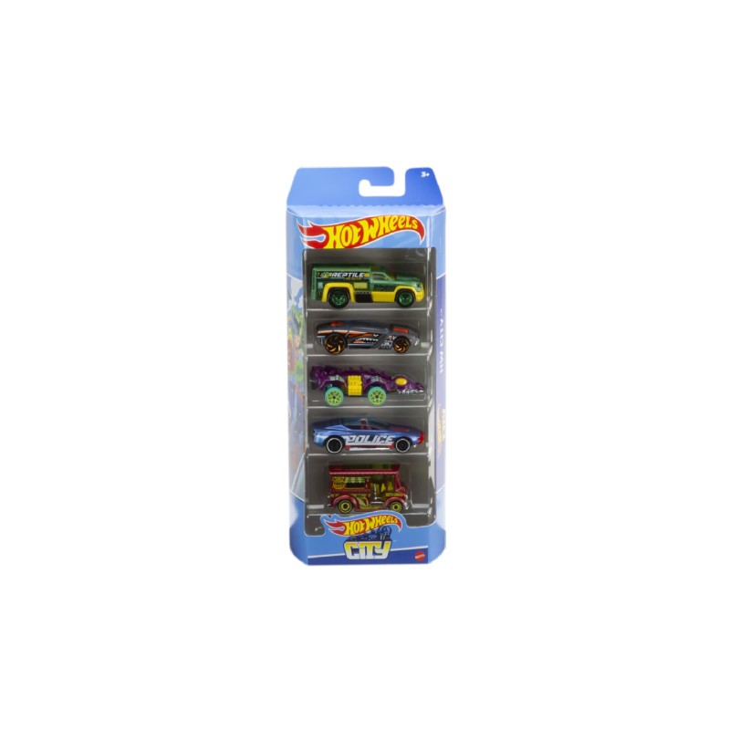 Setul contine 5 masinute HW City: Bread Box, Alpha Pursuit, Fangster, Rogue Hog si Rescue Duty.