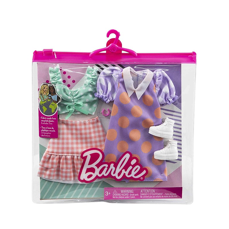 Aceste pachete de modă oferă o distracție dublă cu haine și accesorii pentru păpușa Barbie pentru 2 look-uri complete!