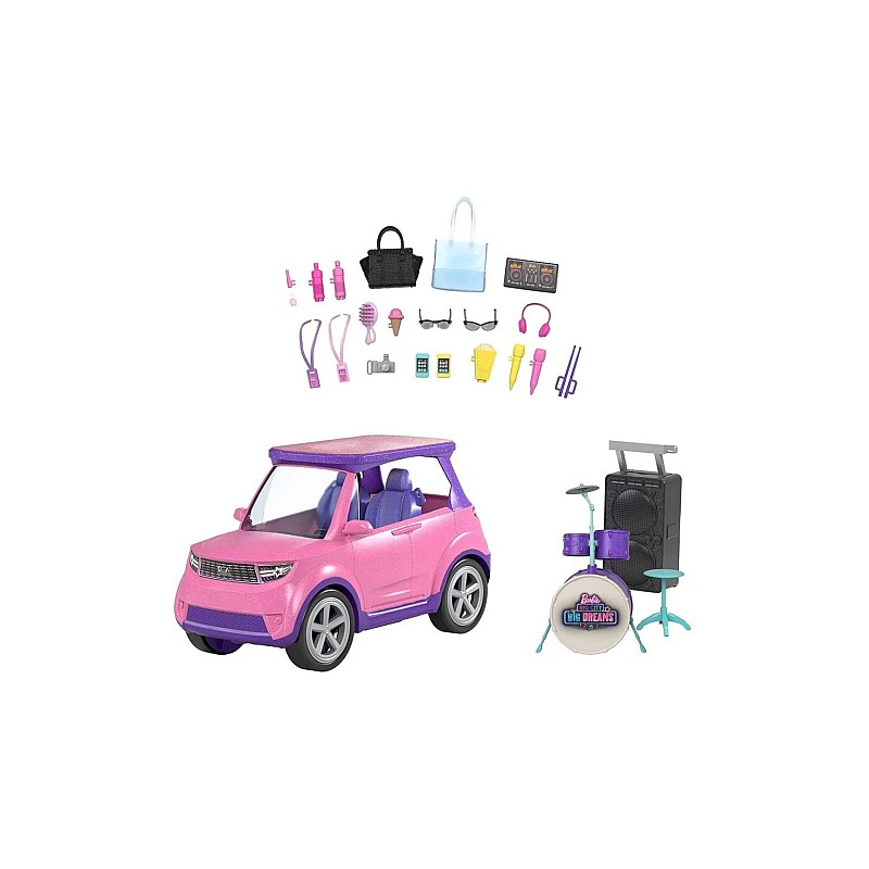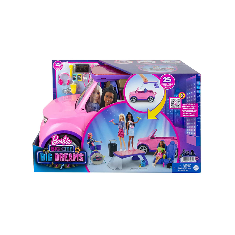 Imaginatiile pot porni la drum si pot pune in scena aventuri muzicale, cu acest set cu vehicul Barbie care se transforma, inspirat de Barbie Big City, Big Dreams!