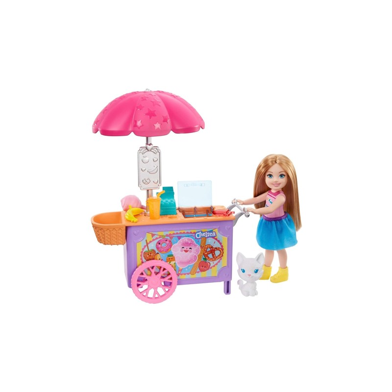 Accesoriile pentru povești includ o casă de marcat și piese colorate pentru gustări, unele piese au mânere pentru păpușa Chelsea, iar altele au un design plug-and-play!