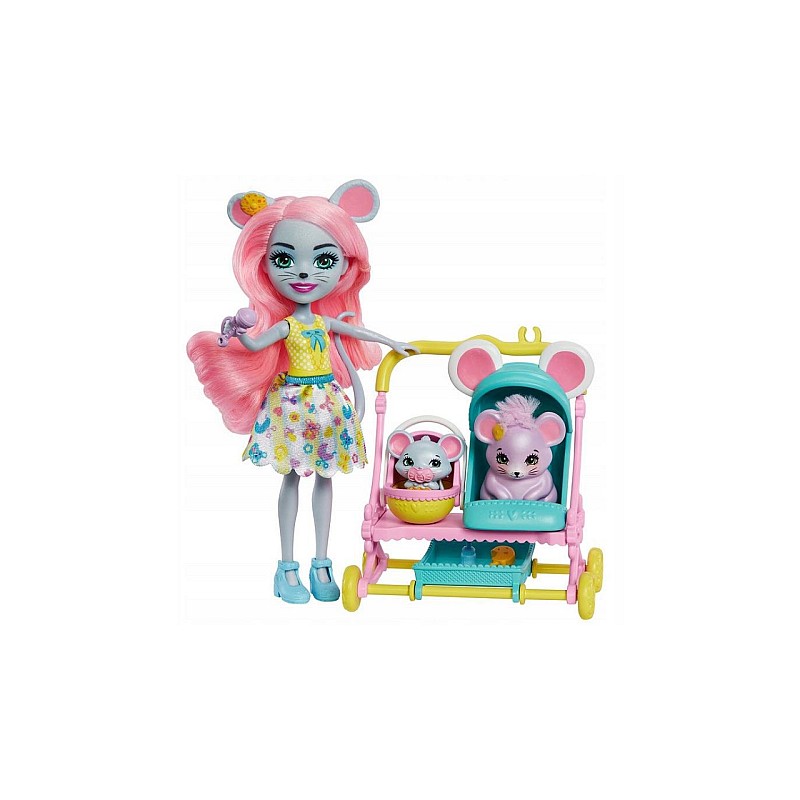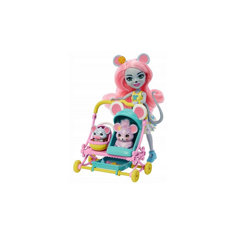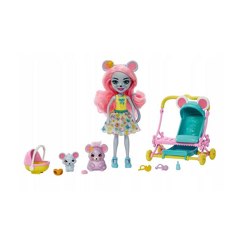 Set Doll Enchantimals Mouse Baby Buggy 12cm (hkr57)