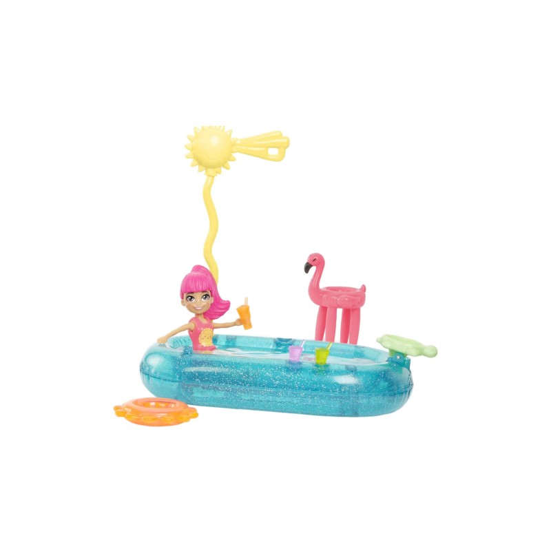 Distrează-te la soare cu pachetul Polly Pocket Basketball Splash Pack, cu păpușa Margot purtând o ținută drăguță inspirată din baschet.