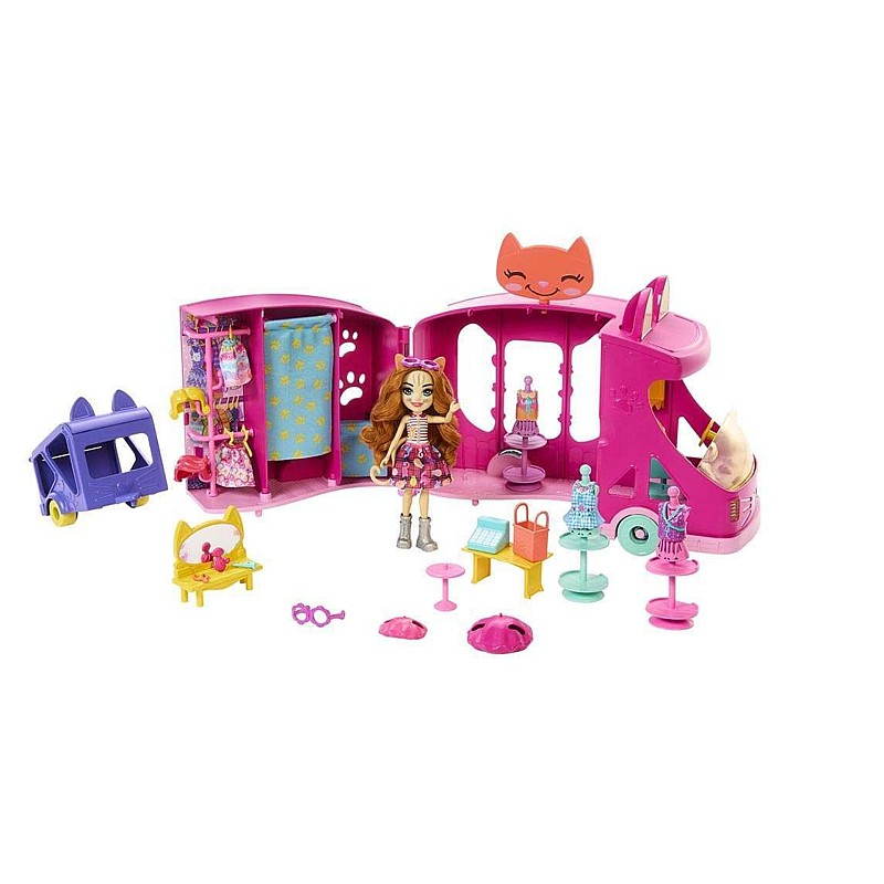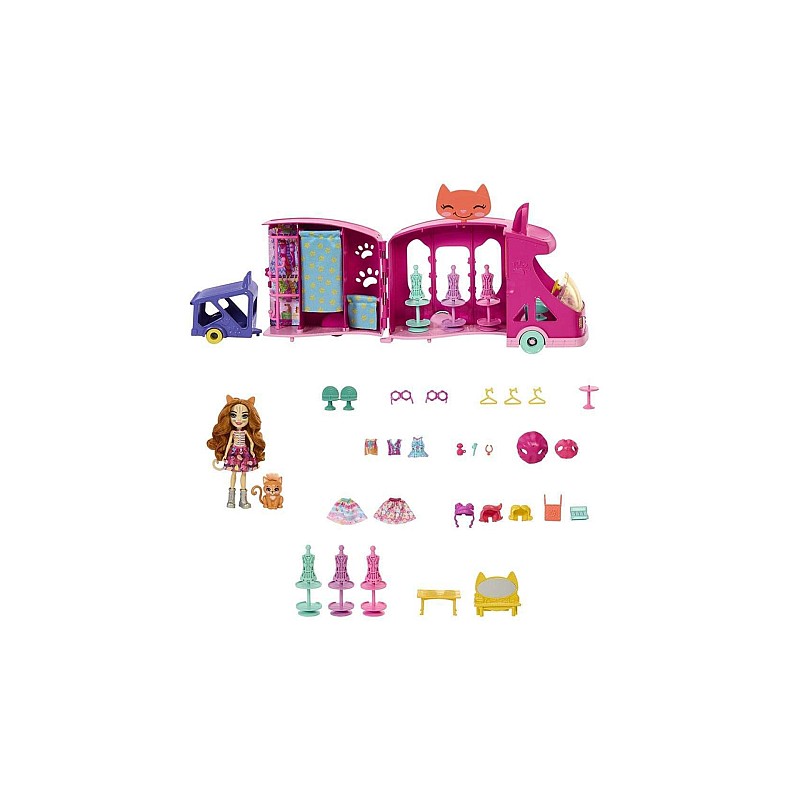 Copiii își pot pune în scenă propriul spectacol de modă atunci când Camionul Modei ajunge în oraș cu o păpușă Enchantimals  inclusă.