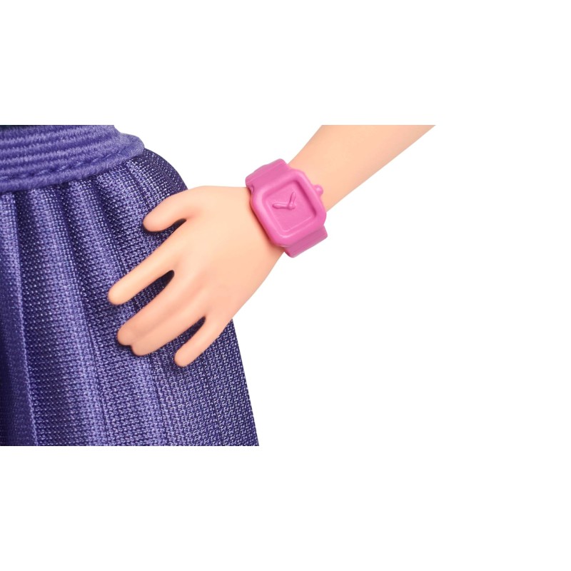 Această păpușă Barbie micuță își poartă părul roșcat într-un ponei săltăreț! Look-ul ei are detalii amuzante care îi fac personalitatea să iasă în evidență, cum ar fi un ceas roz și adidași albi.