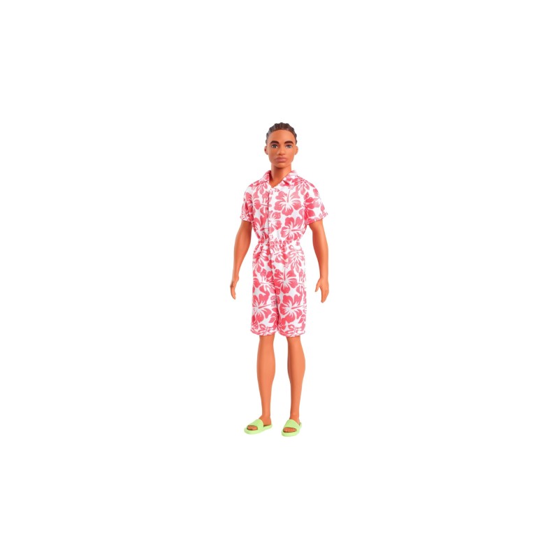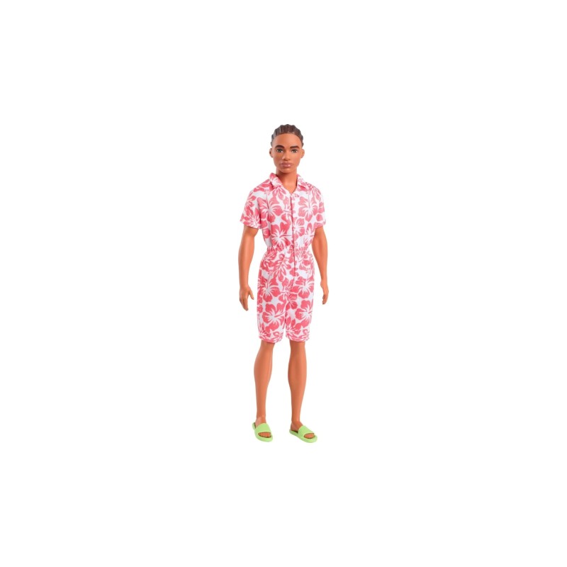 Barbie Ken Hawaiian Floral Jumpsuit Look with Brown Brides Hair Doll Fashionistas (HYT99) este o păpușă Ken din colecția Barbie Fashionistas, care se remarcă printr-o ținută vibrantă și un look modern.